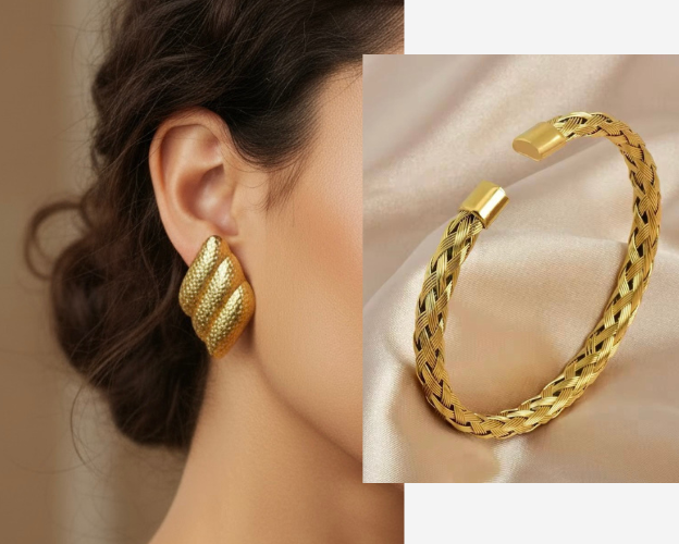 Our jewellery is made from high-quality Stainless steel, making it Water friendly and Non tarnish for everyday wear. We offer stylish jewellery at affordable prices, without compromising on quality.
